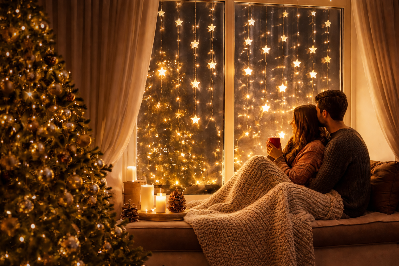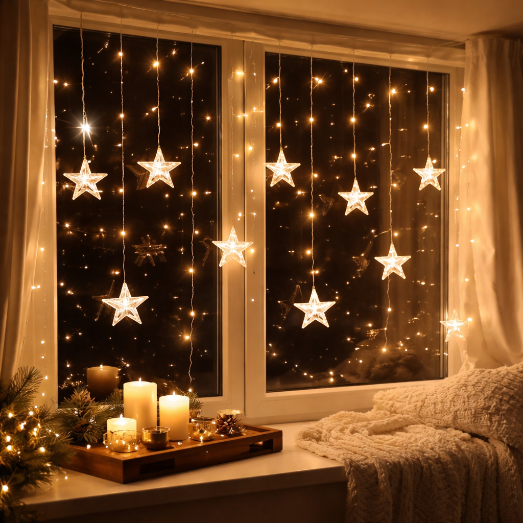 Soft star lights and gentle candlelight come together to create a peaceful, cozy atmosphere. Perfect for winding down at night and filling your home with a sense of calm and warmth.
